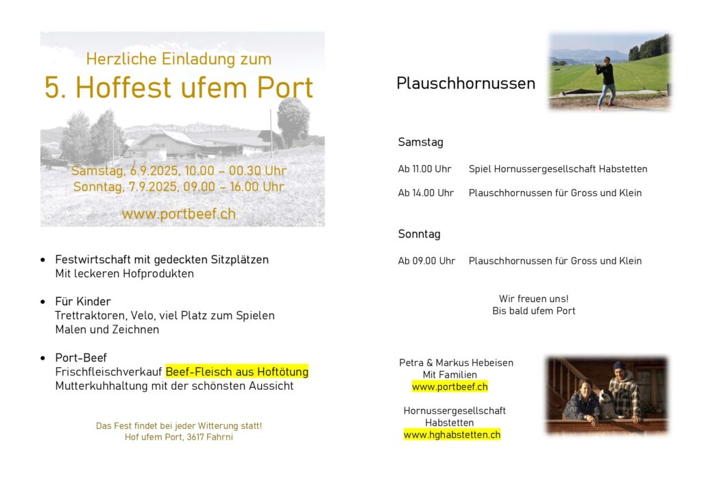 6. Hoffest ufem Port Das nächste Hoffest findet am 12. & 13. September 2026 statt.Weitere Informationen folgen. Eindrücke Hofbesuchstag 2022